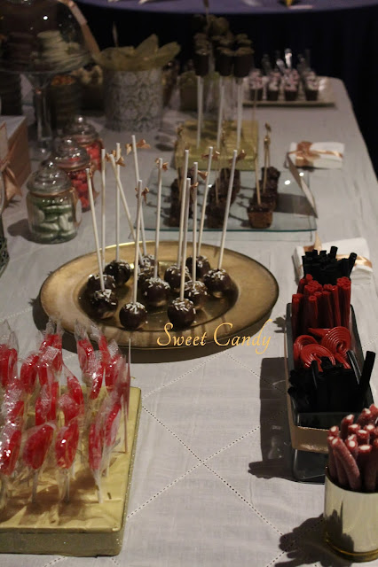 Al principio me resultó un color muy difícil de combinar en una candy bar, pero cuando ví como era el salón donde iba a ser el baile y las copas, tuve claro que era el mejor color, ya que tenía unas paredes preciosas en color caoba.